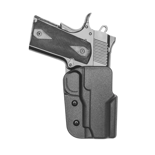 Made from an exceptionally strong proprietary blend of polymers, the Signature OWB Holster for touts a durable build with rigidity. With it’s IDPA legal Optic Ready Speed Cut, compatibility with our wide range of belt attachments, and precision molding - it’s easy to see why the OWB carry just got a whole lot easier with the Blade-Tech 1911 4.25 Inch Commander holster. Blade-Tech offers the best 1911 commander holster on the market and it’s designed so you can carry your firearm with confidence knowing that it's securely in place. The Blade-Tech 1911 4.25 Inch Commander Holster keeps your gun secure and is compatible with a wide variety of attachments, making it as versatile as possible. Plus, the adjustable retention ensures that your 1911 holster 4.25 inch barrel handgun will stay exactly where you need it. Whether you're wearing a tailored suit or your favorite pair of jeans, this 1911 4.25 Inch Commander holster will help you keep your gun cool and secure. So go ahead and give yourself some peace of mind - order the Blade-Tech 1911 4.25 Inch Commander holster. Browse our entire lineup of Made in USA OWB (Outside the Waistband) 1911 4.25 Inch Commander Holsters below. Signature OWB Holster from Blade-Tech is a favorite among competitive shooters.