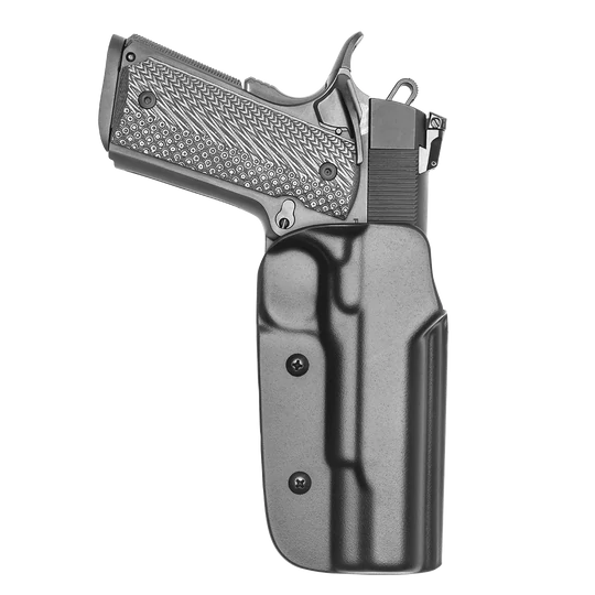 The Classic OWB Holster for 1911 Government 5" With Rail is worn by some of the most renowned marksmen in modern competitive shooting sports. With its adjustable retention, modular mounting holes, speed cut, and optics compatibility, you have a 1911 Government With Rail holster that can be tailored to your shooting style.