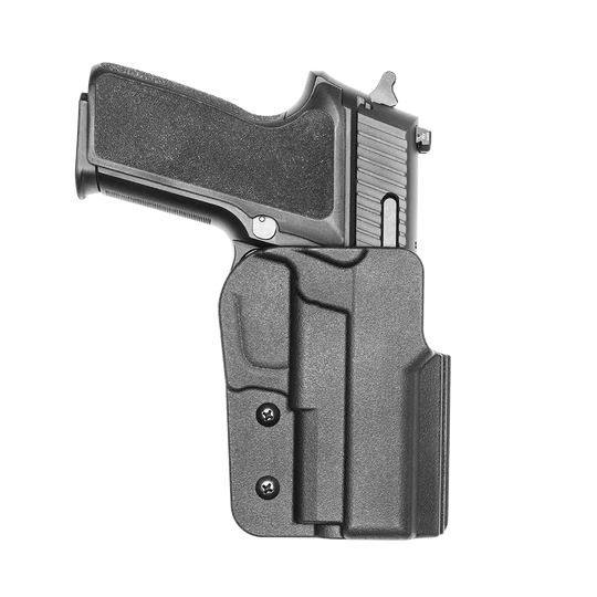 The Classic OWB Holster for Sig Sauer P228 & Sig Sauer P229 is worn by some of the most renowned marksmen in modern competitive shooting sports. With its adjustable retention, modular mounting holes, speed cut, and optics compatibility, you have a Sig P228 / P229 holster that can be tailored to your shooting style.