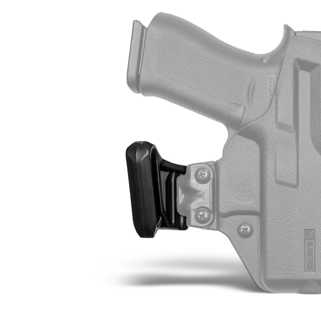 The Blade-Tech® Mod-Lok™ Appendix Inside The Waistband Mods™ for the Total Eclipse 2.0® is a game-changer when it comes to appendix carry. Featuring both a right and left-hand option, one set of mods features an extended “claw” which pushes the grip of your firearm into you body, improving concealment. No matter what your carry preference is, you will be covered with our interchangeable Mod-Lok System.