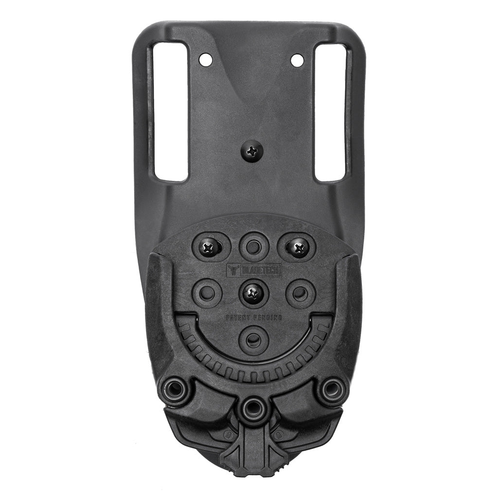 The Tek-Mount™ Receiver is the female portion of the Tek-Mount™ system, which is a two part quick connect mounting system and requires the Tek-Mount™ 360 Insert Disk for proper use. This system provides the same function, speed, and ease of use as the Safariland® QLS but with the added ability to cant your holster instantly without the use of screws or posts. The patent pending Tek-Mount allows for 10 degree cant increments in 360 degrees. The receiver can be mounted on your existing belt attachments, MOLLE Attachments or directly to surfaces like car dashboards, bed frames, and more when choosing the "No Attachment" option.