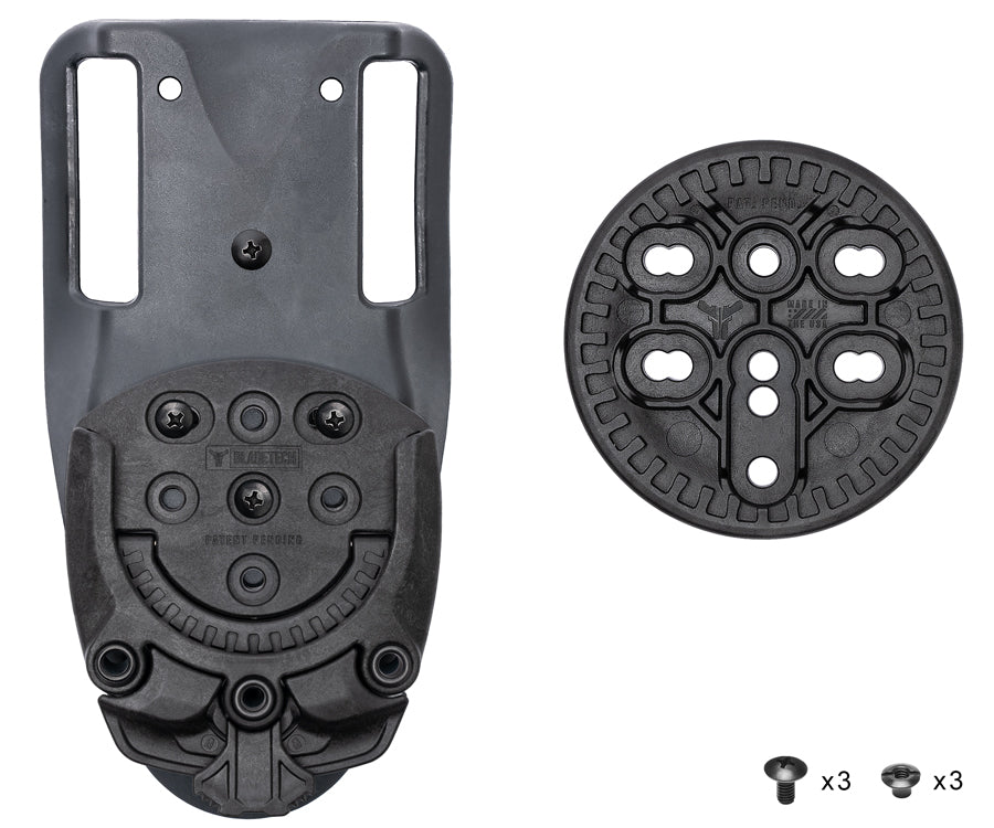 The Tek-Mount™ is a two-part quick connect mounting system consisting of a Receiver and a 360 Insert Disk™. This mounting system provides the same function, speed, and ease of use as the Safariland® QLS but with the added ability to cant your holster instantly without the use of screws or posts. The patent pending Tek-Mount mounting system allows for 10-degree cant increments in 360 degrees. The Tek-Mount Receiver is to be affixed to Belt attachments as a belt mount, Molle Attachments, Drop-Leg Platforms, and more. While the Tek-Mount 360 Insert Disk is to be affixed to your OWB holster, mag pouch, knife sheath, or any other carried gear. NTOA Member tested and approved, the Tek-Mount is durable, reliable, and modular.